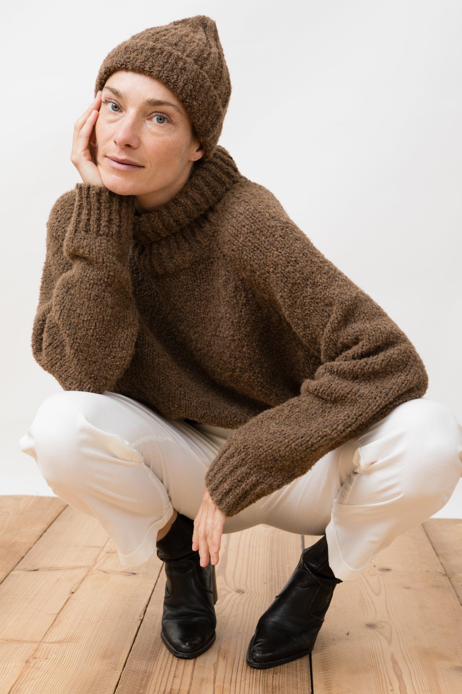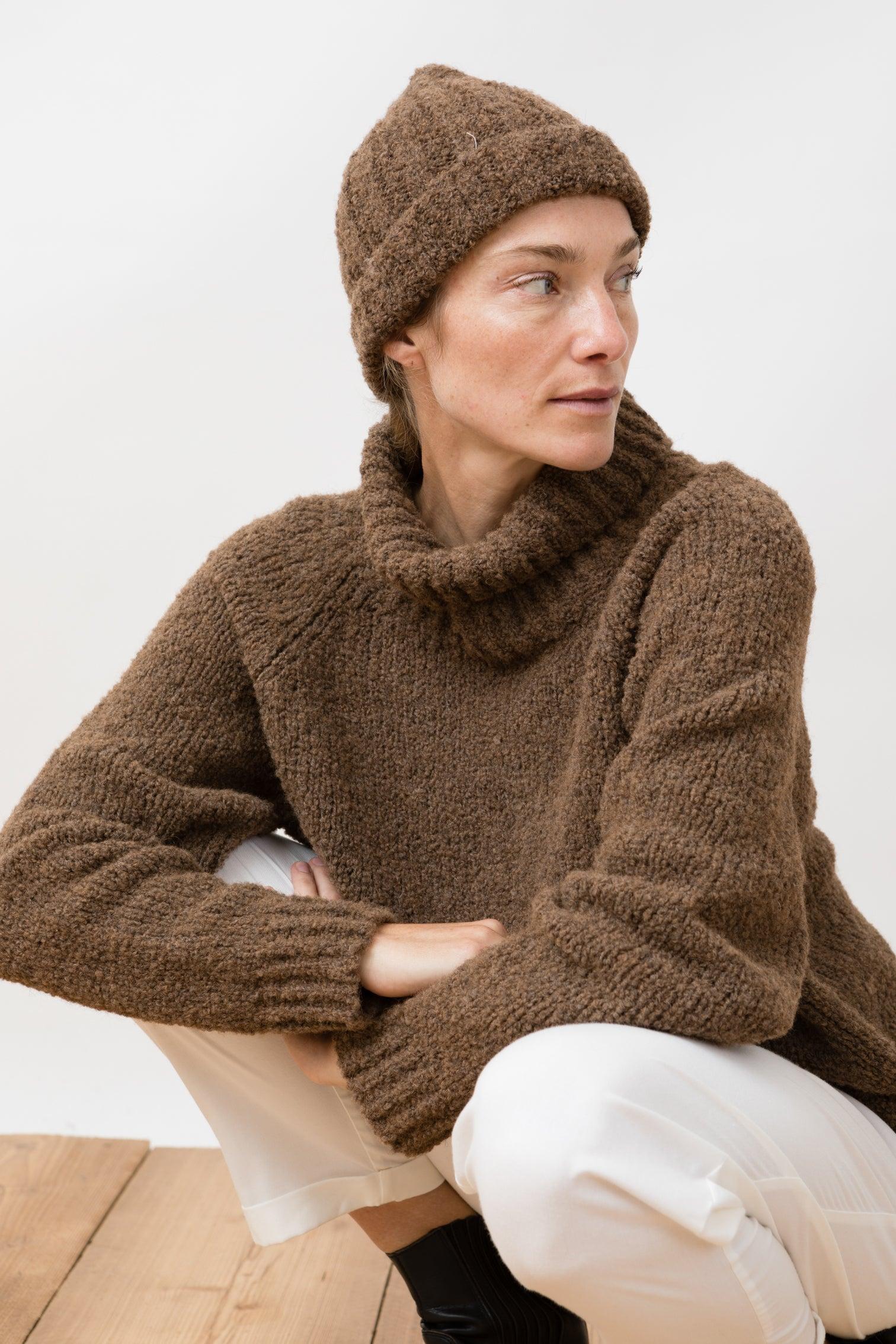 OSKAR BEANIE, knitted from an incredibly soft blend of undyed alpaca and highland wool. Pair the one size piece with the matching Ode Sweater in the color you feel most alive and your ears will never freeze again.