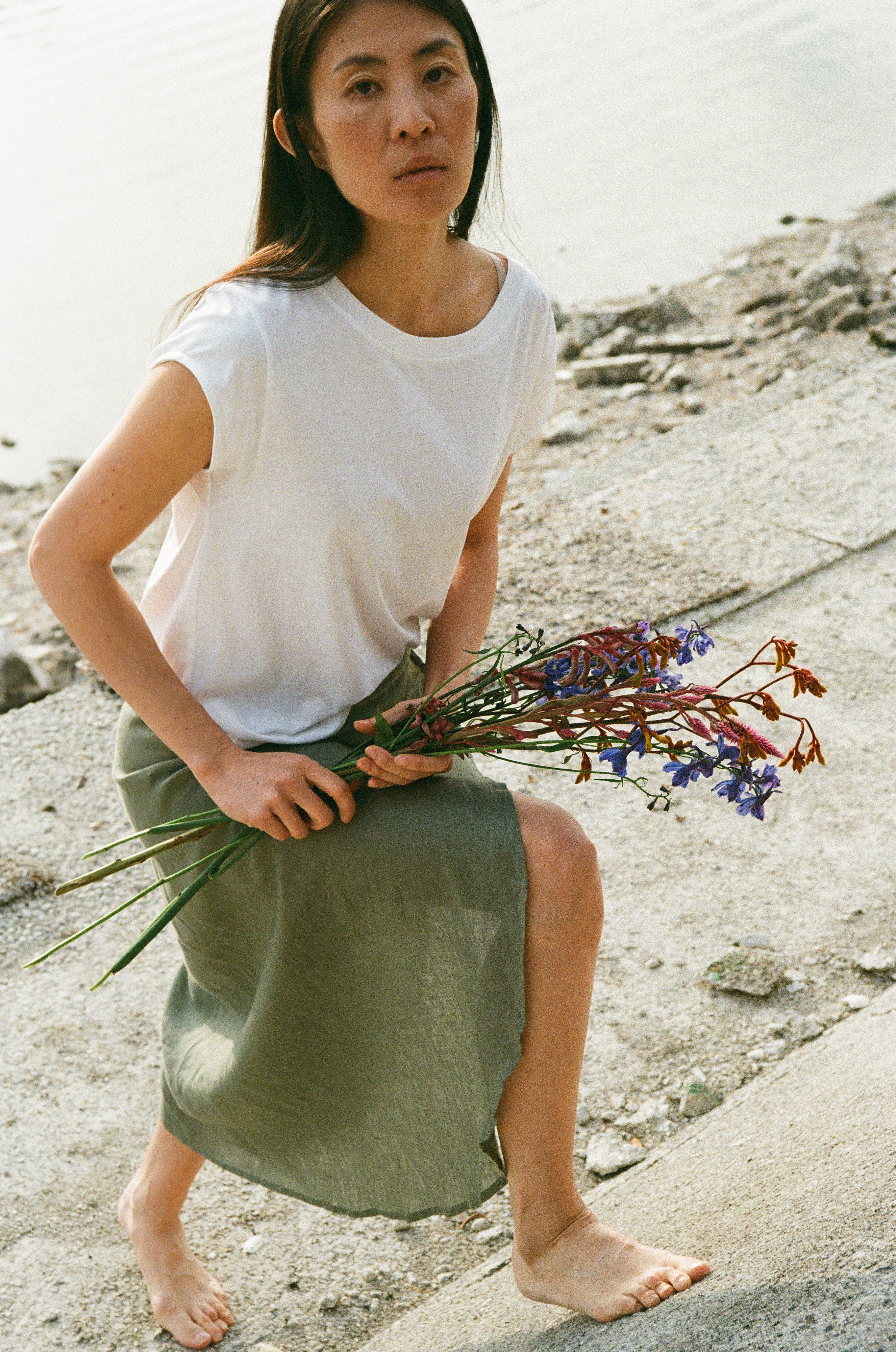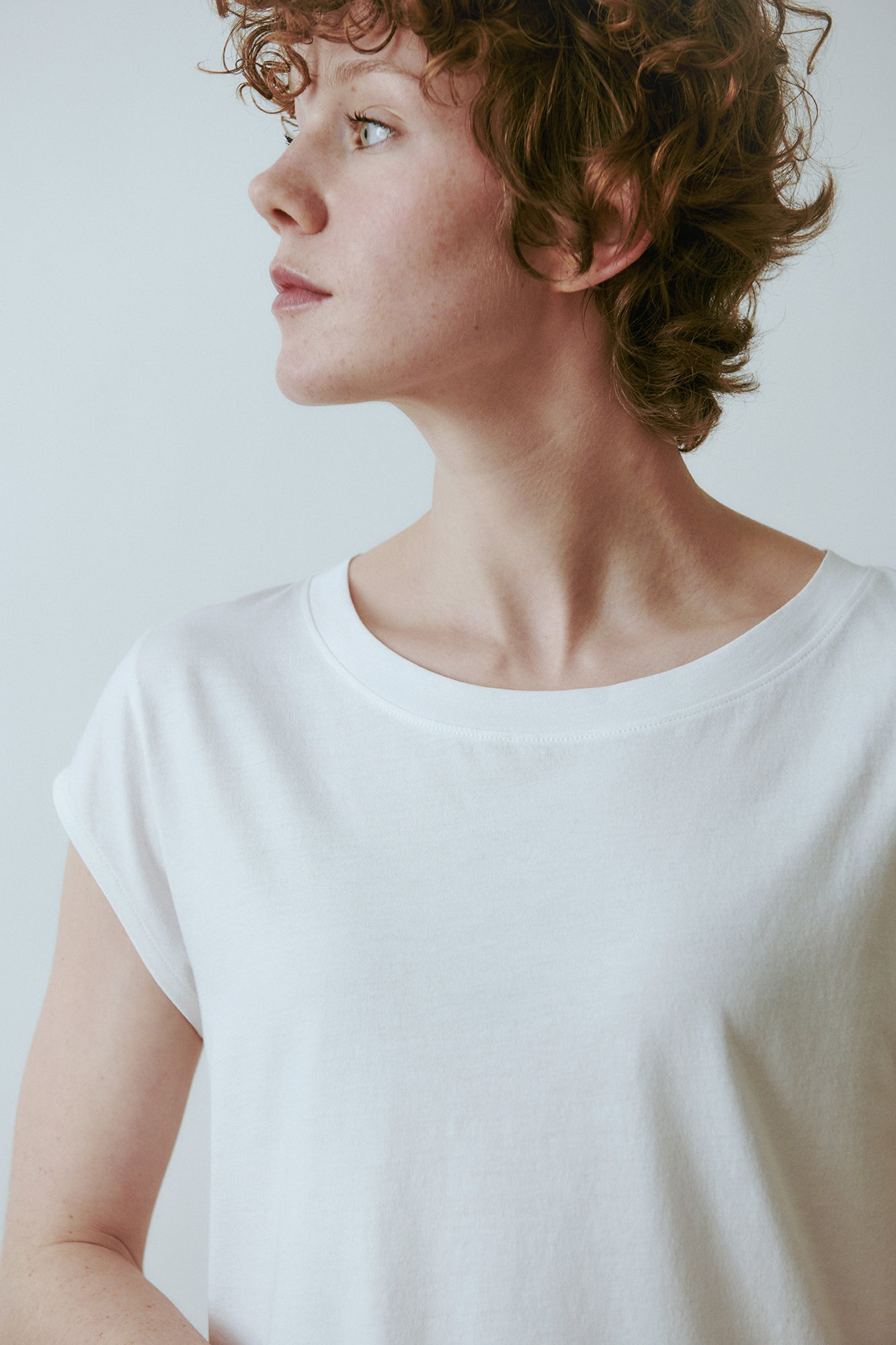 ISLA, our longstanding essential tee. Made from lightweight, high-quality jersey, it features a straight cut with capped sleeves for a perfect fit.