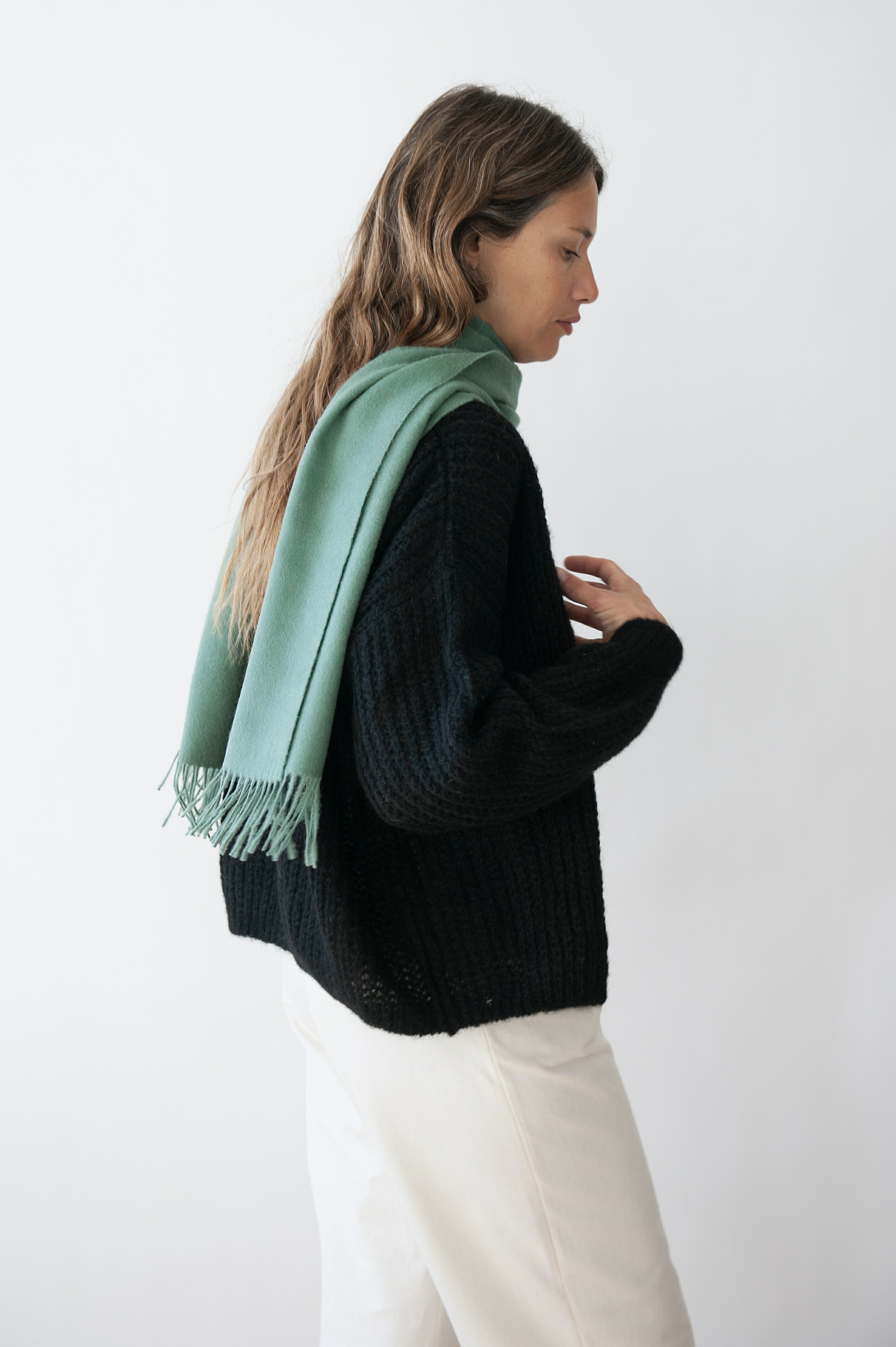 CALLAO SCARF is woven from baby alpaca wool for unmatched softness and natural warmth. Light yet luxuriously cozy, its fine fibers are naturally breathable and gentle against the skin. Finished with delicate fringe, it’s a timeless accessory that adds a touch of effortless elegance to any cold-weather look.