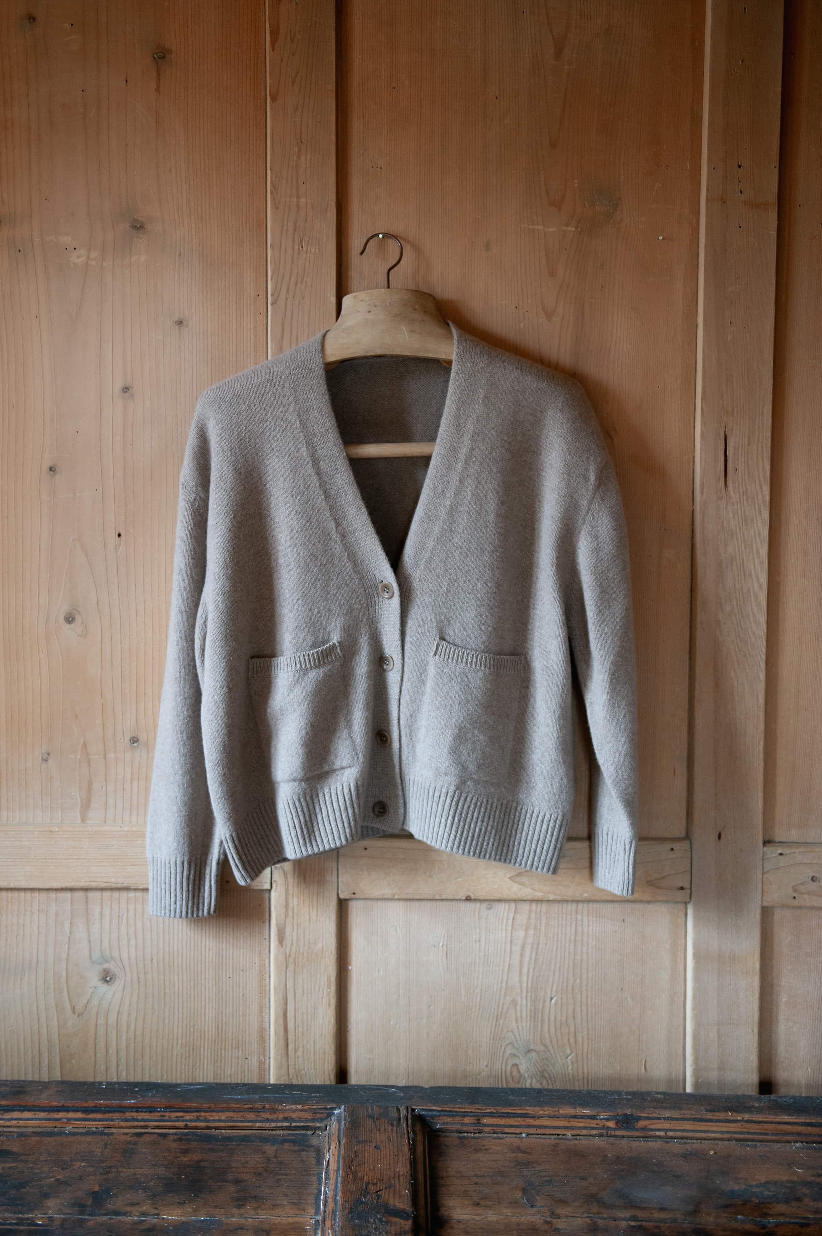 GIORGIA CASHMERE CARDIGAN is a luxuriously soft, sustainable knit cardigan. Recycled cashmere is made by collecting and respinning pre-loved fibers into new yarn, reducing waste without sacrificing quality. With ribbed trims and front patch pockets, it’s a timeless layer you’ll reach for year after year.