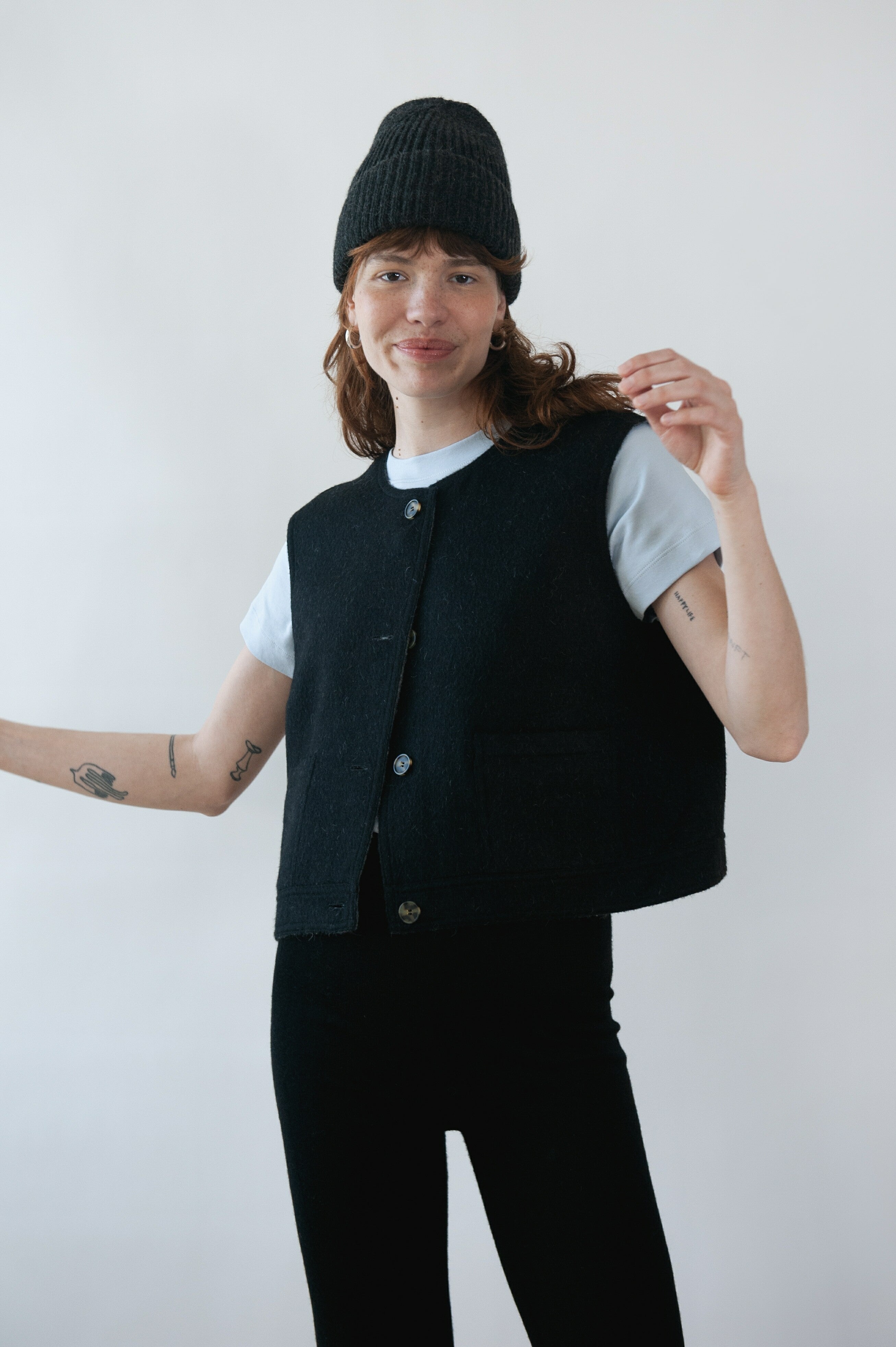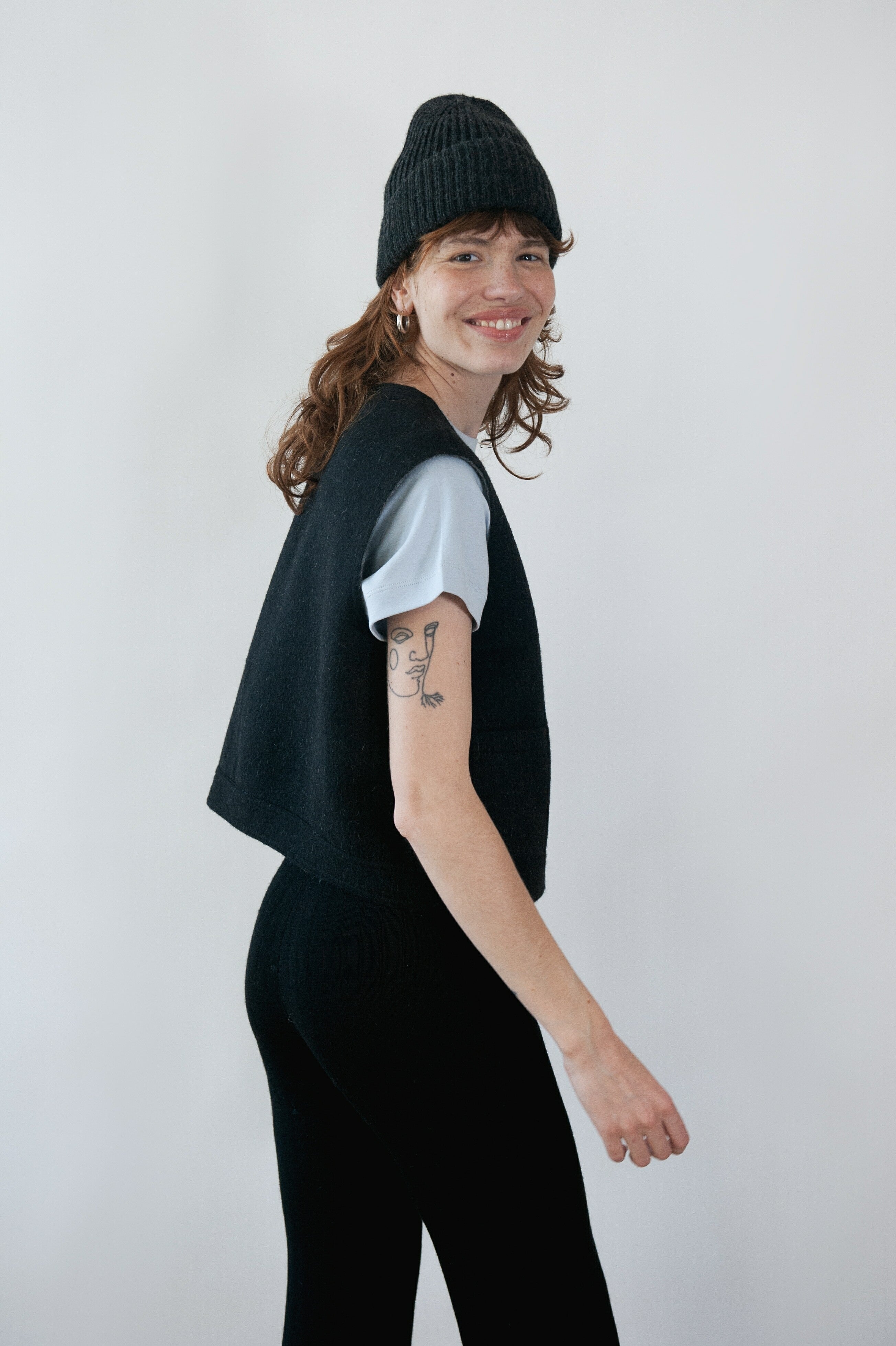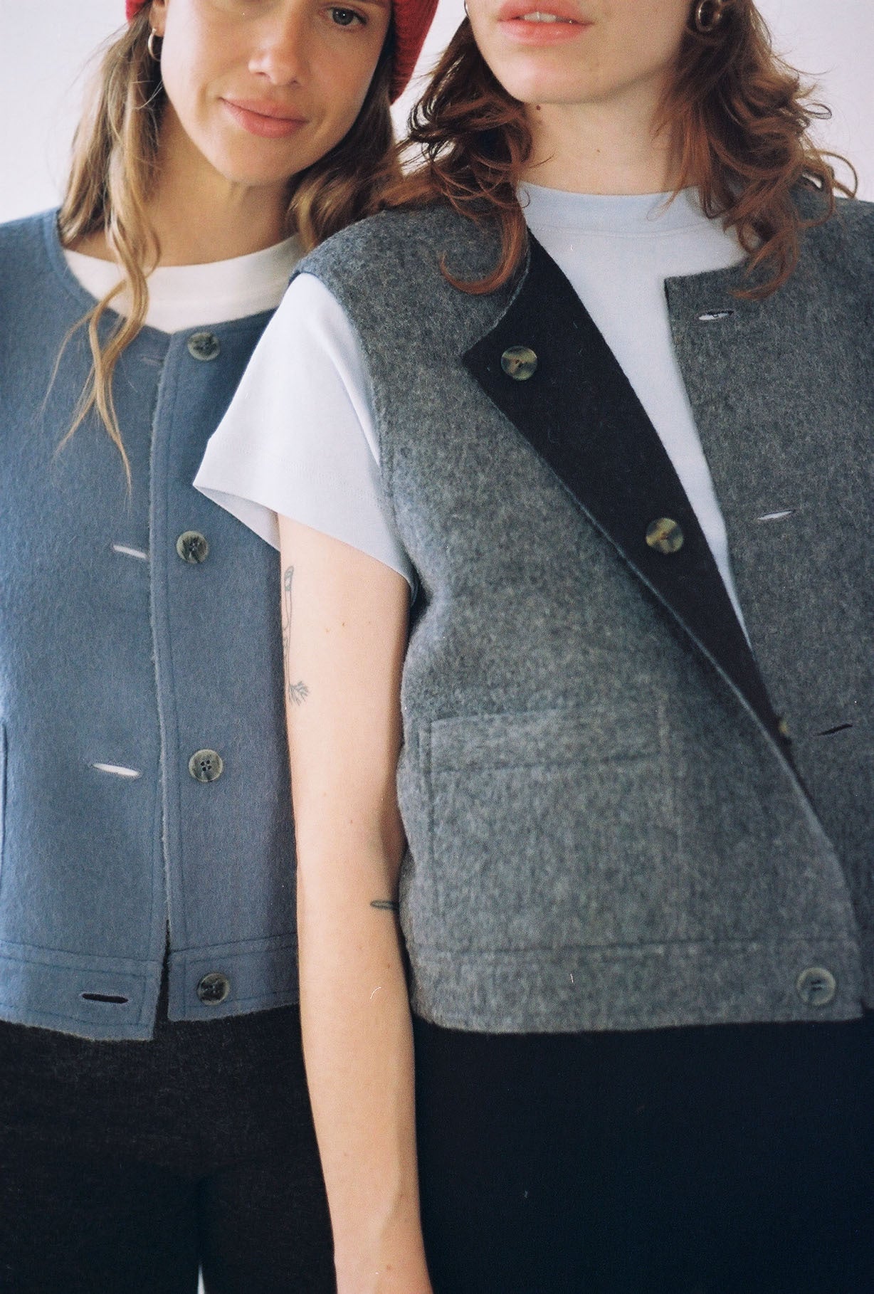 LOUIS VEST is part of our reversible line made of a baby alpaca and wool blend. It features a round neckline, two pockets, and button closure. With its reversible design, you can switch between colours to suit your mood and fit.