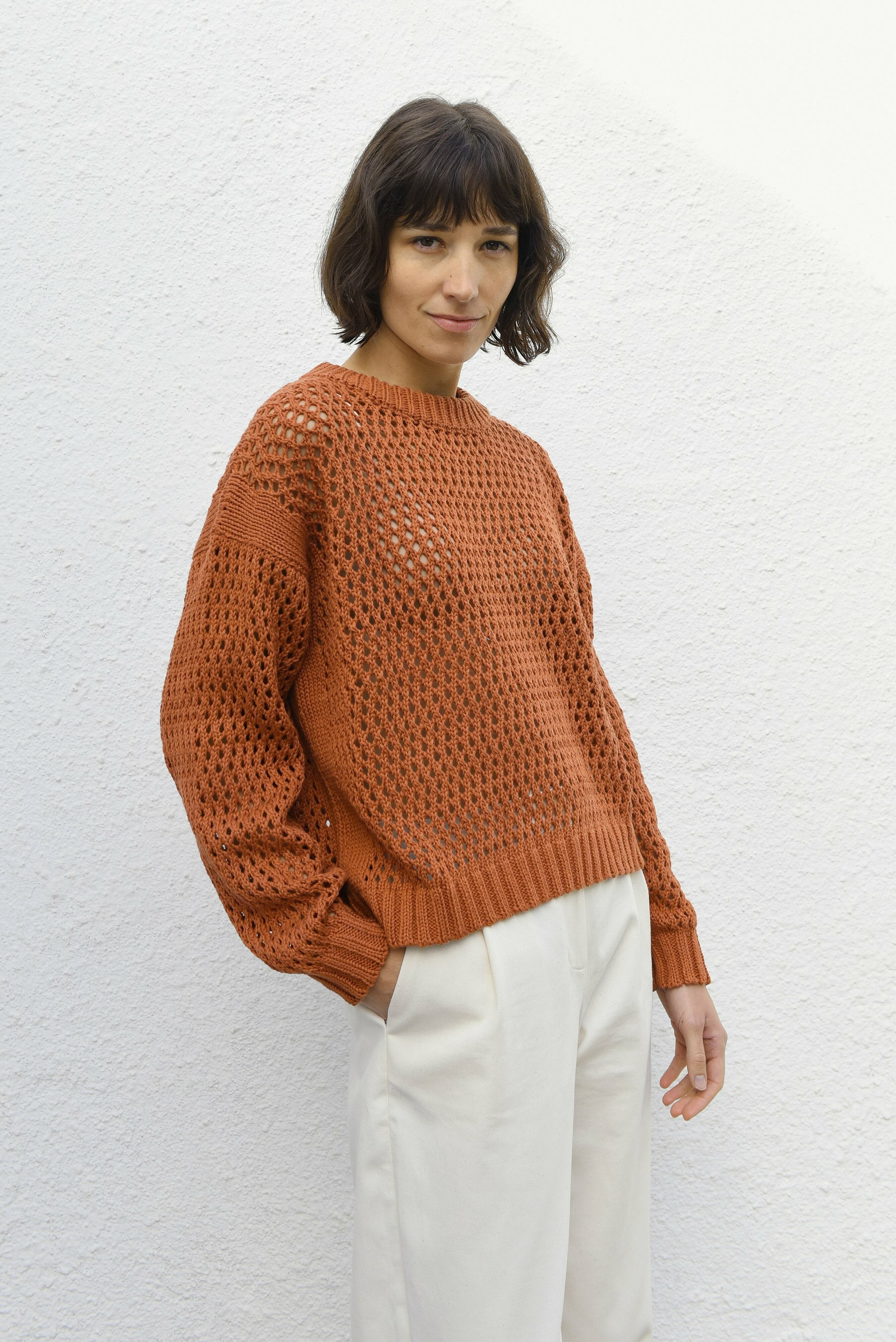 ELORA feels light and airy thanks to its mesh-knit fabric. Crafted from natural materials, it offers a soft touch and timeless fit. The perfect companion for cool evenings and breezy days when you need to layer up without weighing you down. 100% organic cotton
