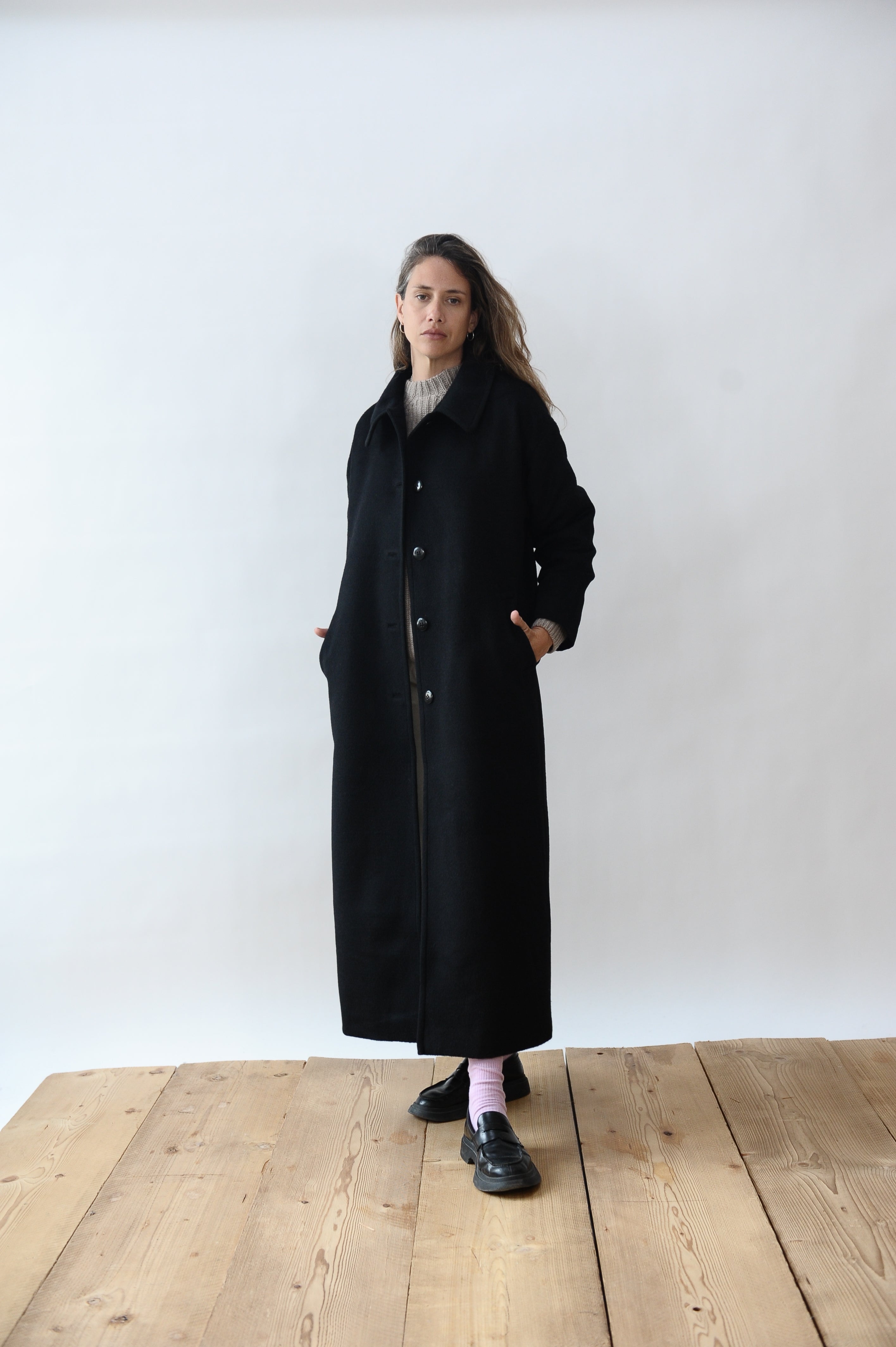 PALOMA MAXI COAT is a timeless staple crafted from the softest baby alpaca wool. With its straight, oversized cut, single-breasted front, and classic spread collar, it blends effortless elegance with everyday comfort. Details like welt pockets and a hidden inner pocket add subtle functionality. Fully lined and beautifully draped, it‘s the perfect coat to elevate any look.