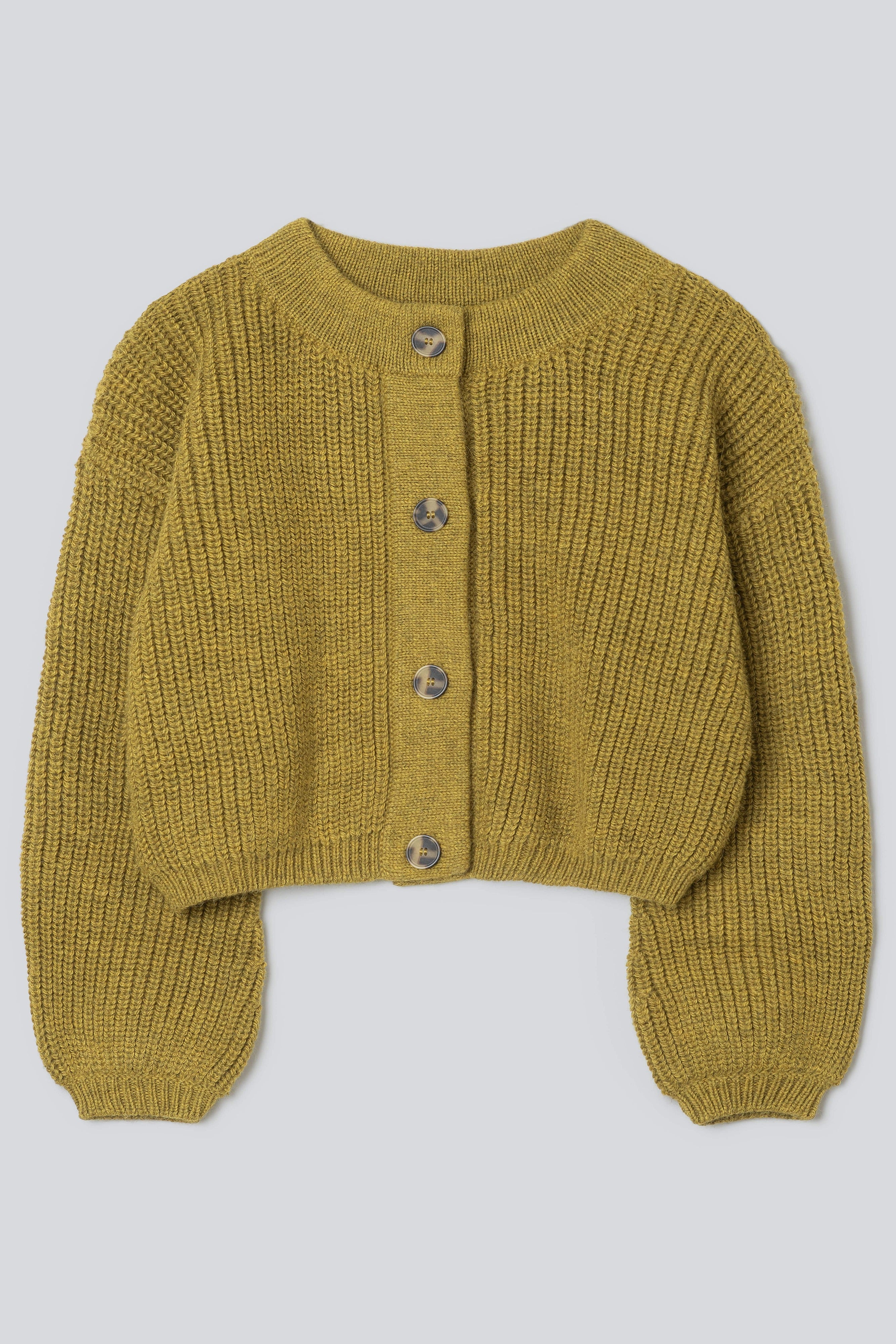 TOSCA CARDIGAN is probably the softest piece you could wish for. Expertly crafted from pure baby alpaca wool, it offers a beautiful drape and irresistible warmth. The buttons are made of recycled paper and resin. Featuring elegant tulip-shaped sleeves, a slightly cropped cut, and a versatile design that can be worn front or back, this chunky-knit cardigan invites you to touch it once—and never let it go.