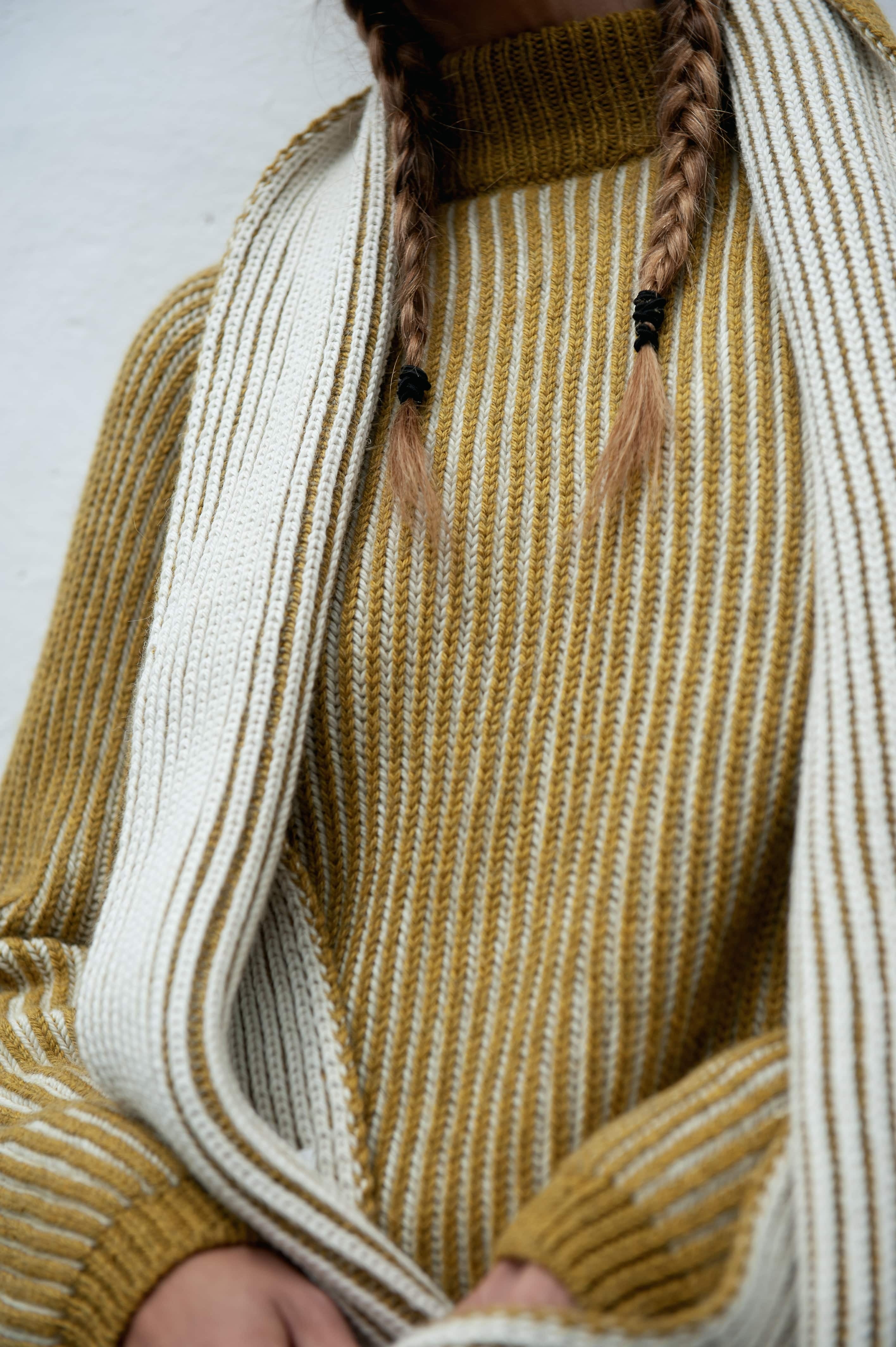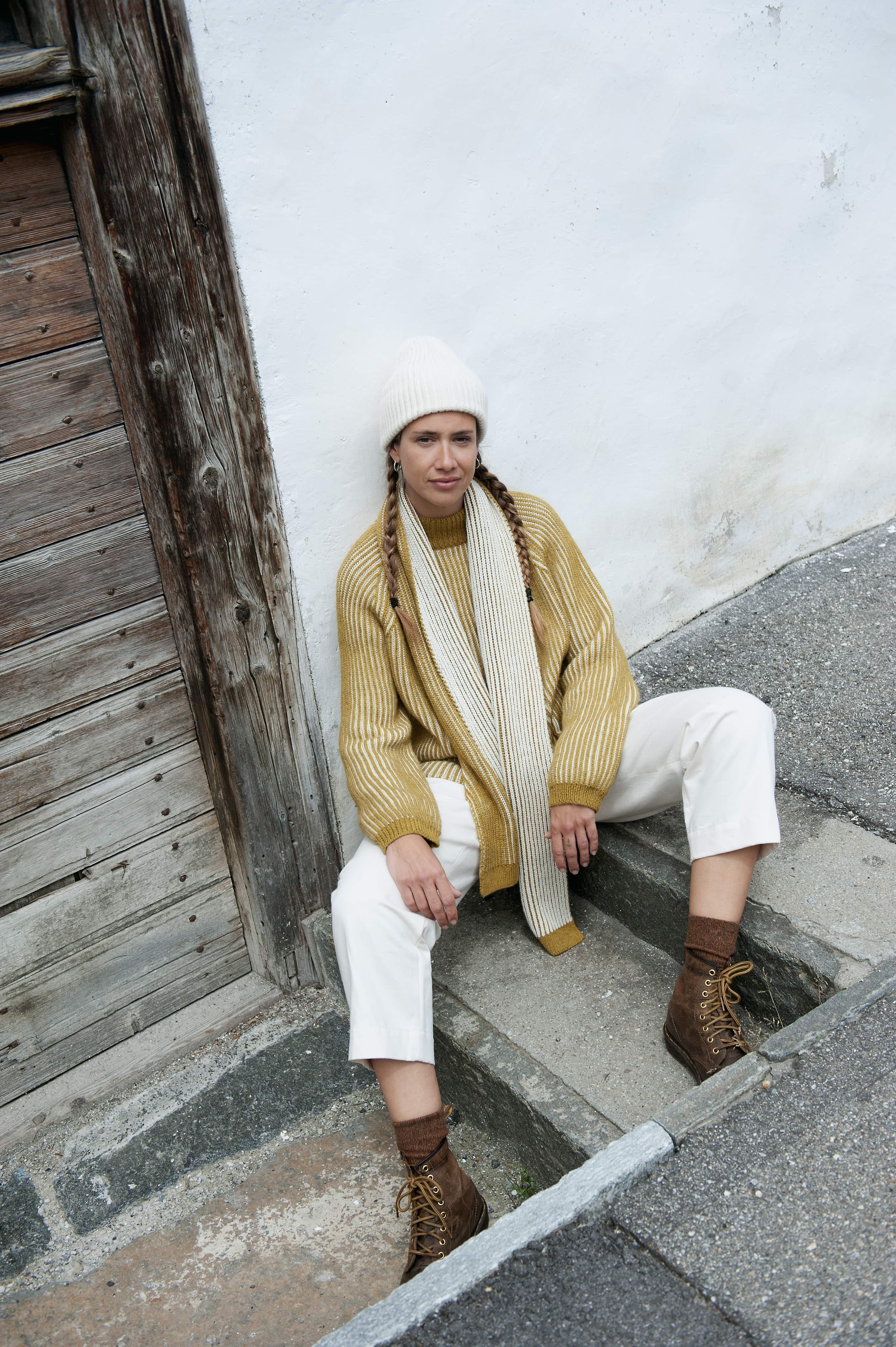Complete your look with the Brooke Scarf, crafted from pure baby alpaca wool in the same richly plaited knit as the Brooke Sweater. Soft, warm, and reversible, it offers two unique color stories in one timeless piece. Generously sized for versatile styling — wrap it, drape it, or bundle up — it’s the perfect blend of comfort and craftsmanship.
