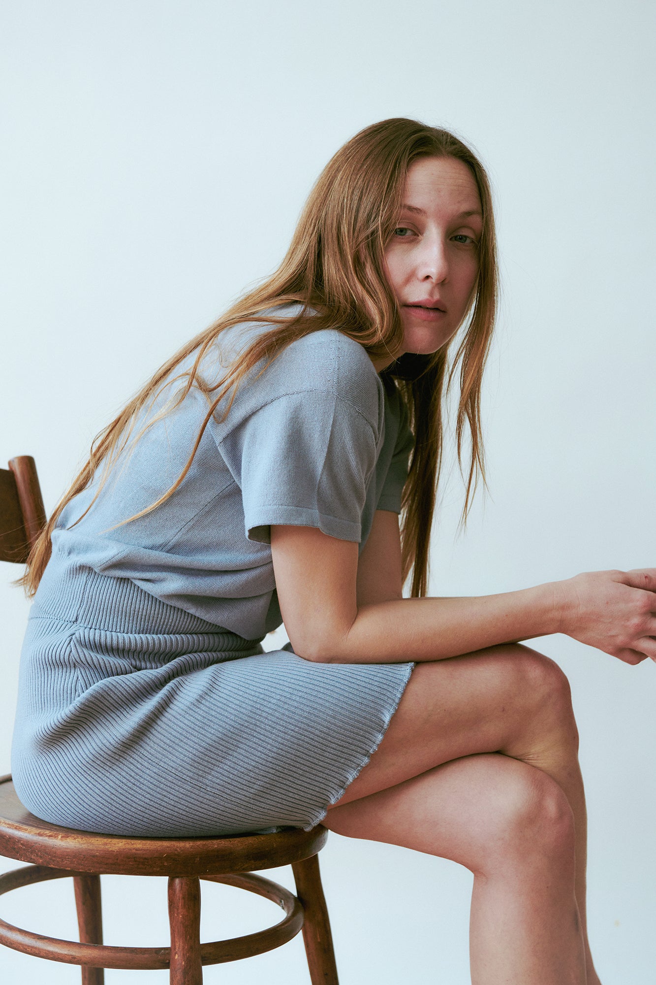A versatile knit skirt in fine ribbed organic cotton that softly adapts to the body. The elastic waistband allows it to be worn high on the waist or lower on the hips, adjusting the length to your liking. Finished with a playful curled hemline for a subtle detail.